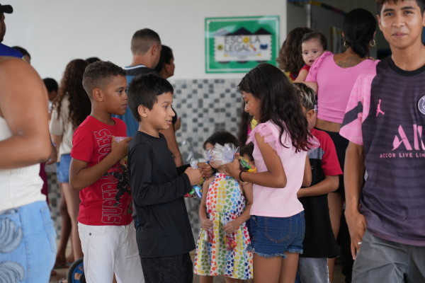 Prefeitura leva chocolate para crianças do Orgulho do Madeira